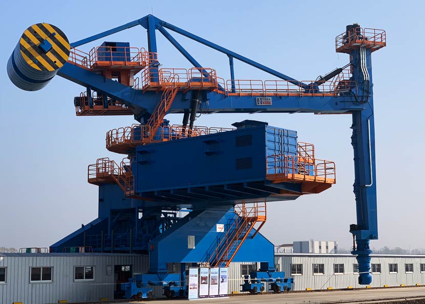 由杭州華新機(jī)電工程有限公司總包的一臺(tái)設(shè)計(jì)生產(chǎn)率為750t/h的螺旋卸船機(jī)總裝完成進(jìn)入調(diào)試階段。該設(shè)備用于國(guó)家能源集團(tuán)宿遷發(fā)電有限公司二期擴(kuò)建2×660MW超超臨界二次再熱機(jī)組工程。本工程位于宿遷市南偏東距市中心18km處的京杭大運(yùn)河南,二期新建碼頭共有4個(gè)泊位,配置兩臺(tái)螺旋式卸船機(jī)、兩臺(tái)16t清艙用港口門(mén)座機(jī)。